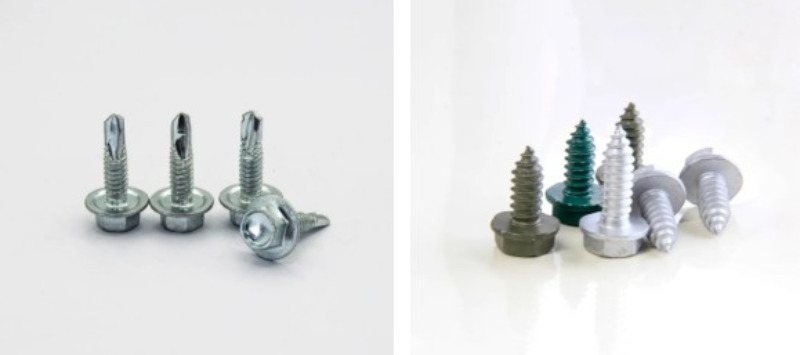 Wkręty samowiercące z łbem sześciokątnym: Zaprojektowany do łatwego montażu przy użyciu elektronarzędzi; powszechnie stosowane w konstrukcjach konstrukcji stalowych.