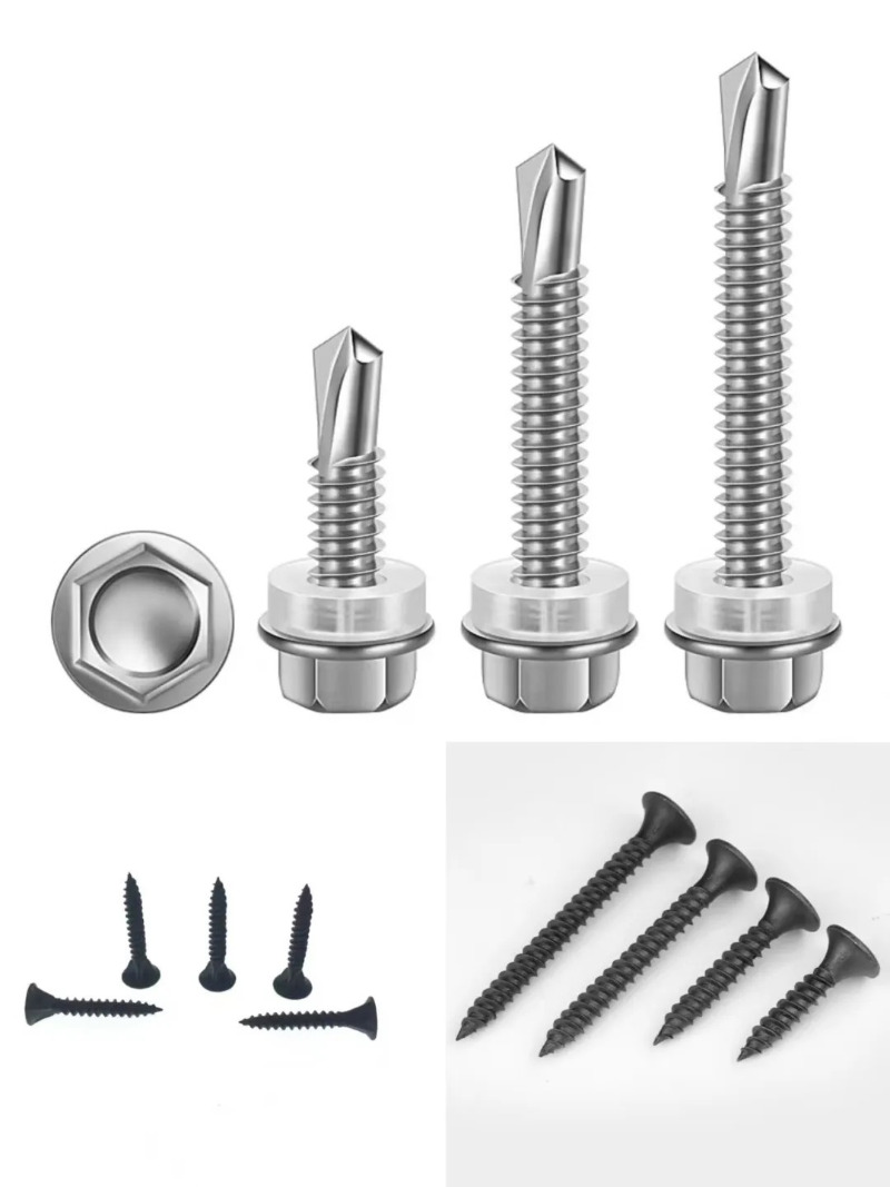 Końcówka wkrętu samowiercącego przypomina wiertło, dzięki czemu może bezpośrednio wiercić otwory i wycinać gwinty w twardych materiałach, takich jak metal. Doskonale nadają się do stosowania w konstrukcjach stalowych, pokryciach dachowych i montażach przemysłowych.